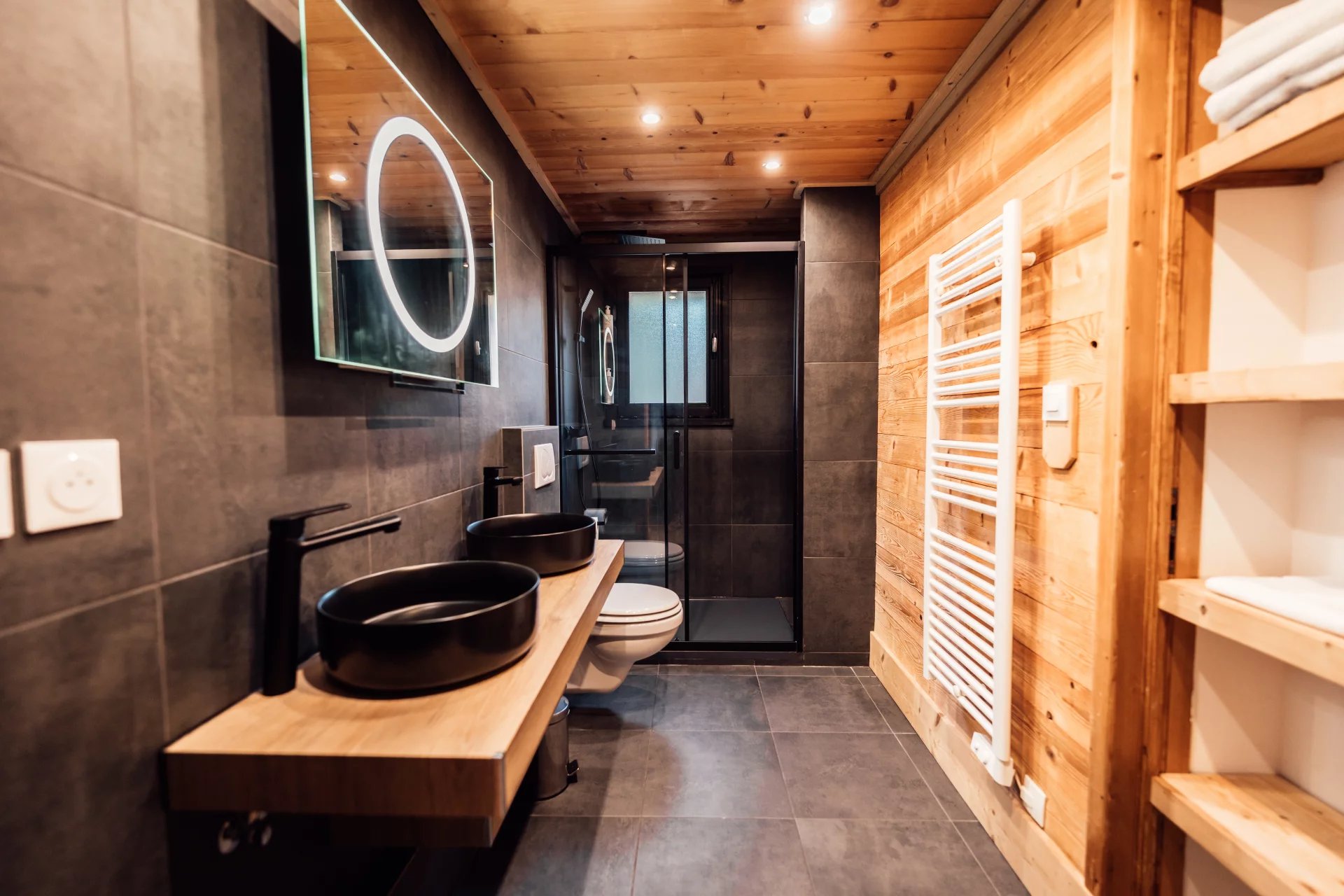 - au 3ème étage : 2 chambres avec salle de bains-WC.
